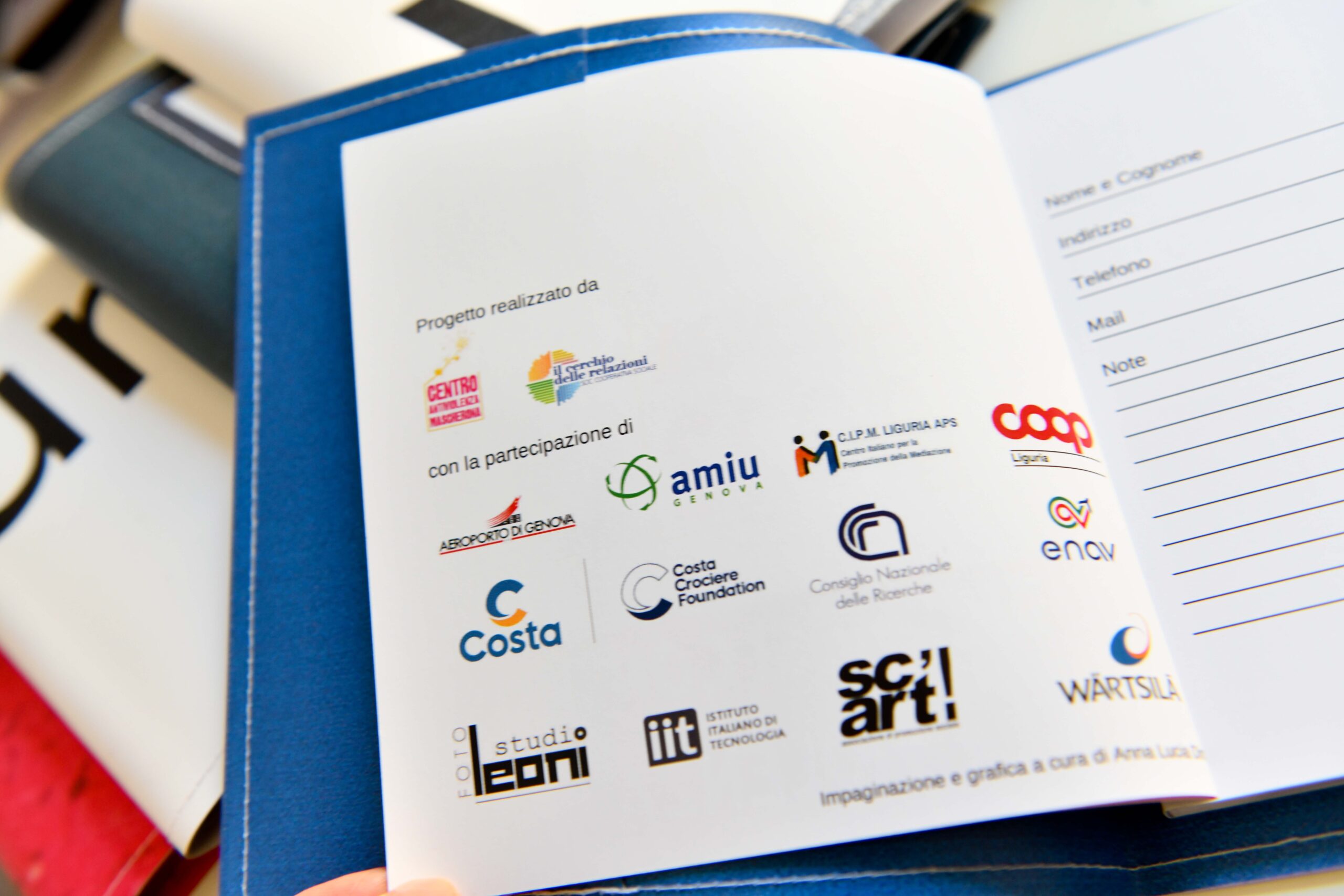 Tanti i nomi che hanno collaborato al progetto: Aeroporto di Genova, AMIU Genova, CIPM Liguria, Coop Liguria, Costa Crociere, Costa Crociere Foundation, Consiglio Nazionale delle Ricerche CNR-ICMATE, Enav, Foto Studio Leoni, Istituto Italiano di Tecnologia IIT, Sc’Art Creazioni al Fresco, Wärtsilä APSS.